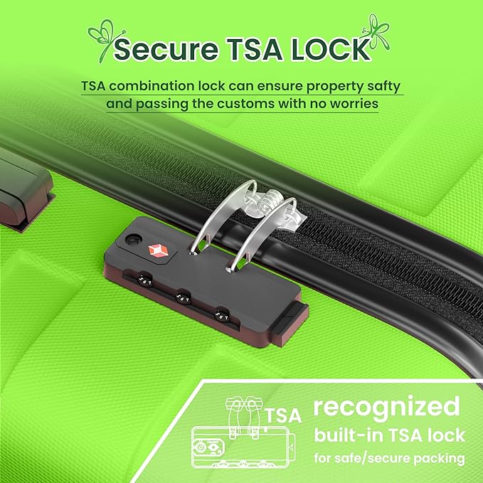 AnyZip Luggage Sets 3 Piece Hardshell Suitcase Set PC ABS Lightweight Travel Suitcases with 4 Double Spinner Wheels TSA Lock 20 24 28 Inch Apple Green