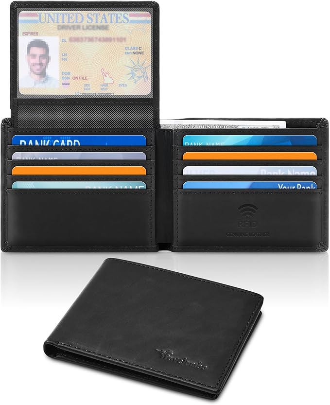 Travelambo Genuine Leather Wallet for Men with Gift Box - Handmade Bifold Stylish - Mens Wallets Rfid Blocking with 2 ID Windows
