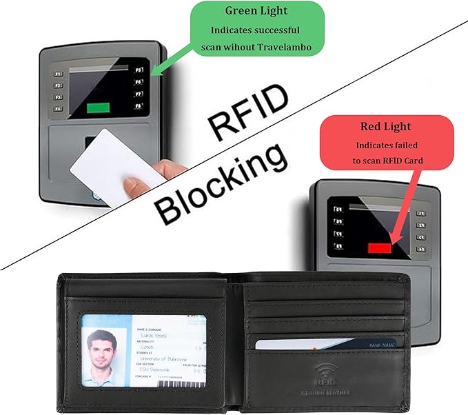 - RFID Blocking: Empower your digital security with our advanced RFID blocking technology, a unique metal composite that specifically counters 13.56 MHz and higher signals, safeguarding your personal information from prying eyes.
