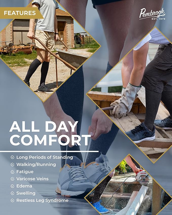 - Boost Your Leg Comfort - Experience ultimate softness with Pembrook men's compression socks. With 8-15 mmHg compression, these socks help promote circulation and reduce pain and discomfort.