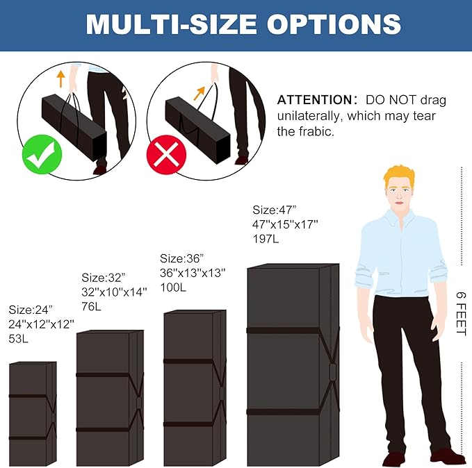 - Dimensions When Full: 32 inches x 10 inches x 14 inches (L*W*H) with extra large capacity, travel bag with roomy interior for storing items. Ideal for camping, hunting and sport travel and even fits for umbrella style strollers