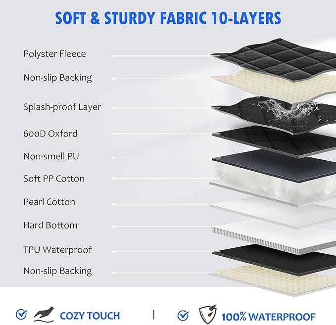 - 【STURDY MATERIAL AND NON-SLIP】 ROUWINNE backseat extender for dogs adopts premium material with 8 layers. 4X4-density oxford cloth better than other 3x2-density in the market, more sturdy. PU Coating Layer is the first waterproof layer, Softer and no smell better than other pvc layer. And Paired with TPU waterproof layer, double waterproof layer better than other one layer waterproof layer. Blankets and Bottom non-slip dot rubber makes dog cover more secure, preventing your dog from slipping.