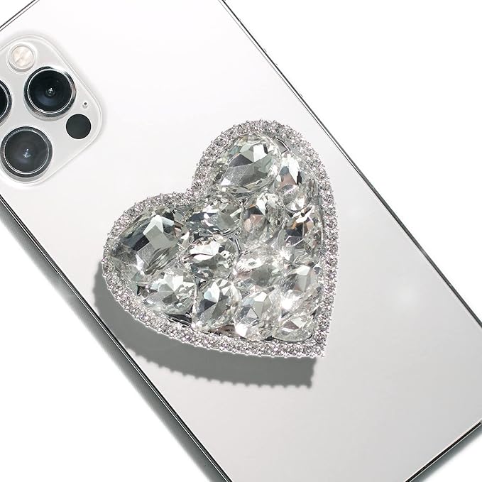 OnTheGrip Cute Cubic Diamond Heart Shape Design Collapsible Expandible Mobile Phone Grip Stand Holder for Smartphone Tablet Cell Phone Accessory (Silver Big)