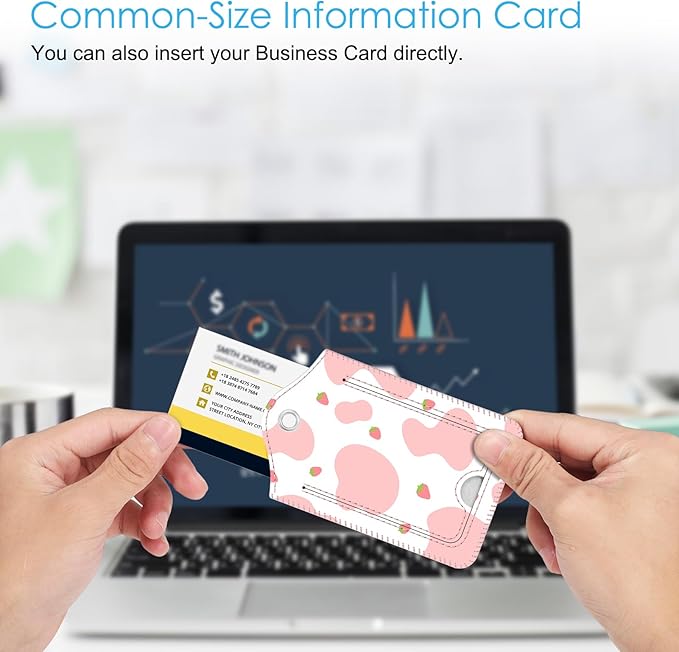 Fintie Luggage Tags, Privacy Cover ID Label with Stainless Steel Loop and Address Card for Travel Bag Suitcase - Strawberry Cow (2 Piece)