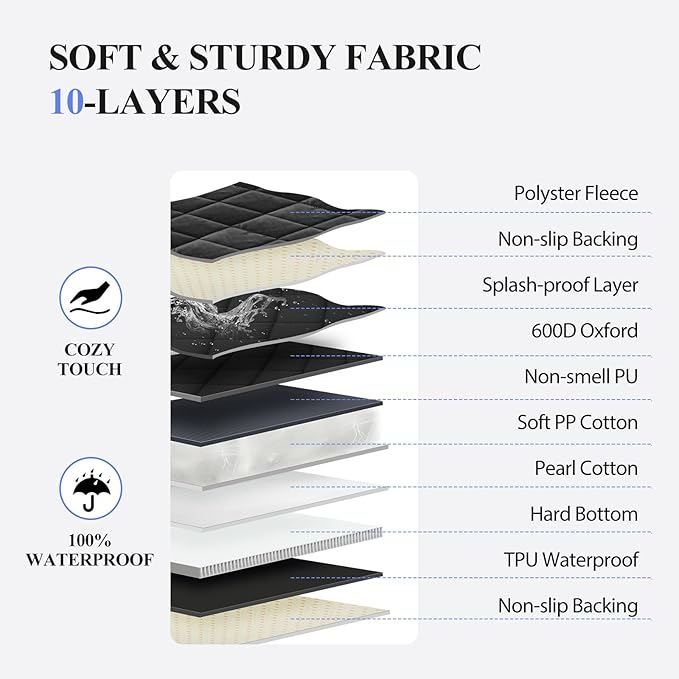 - 【STURDY MATERIAL】 ROUWINNE pet seat covers for trucks adopts premium material with 7 layers. First 4X4-density oxford cloth better than other 3x2-density in the market, more firm and easy to clean. PU coating is the first waterproof layer, Softer and no smell better than other pvc layer. Paired with TPU waterproof layer, double waterproof layers better than other one layer waterproof. Bottom non-slip rubber makes dog cover more secure, stop your dog slipping.