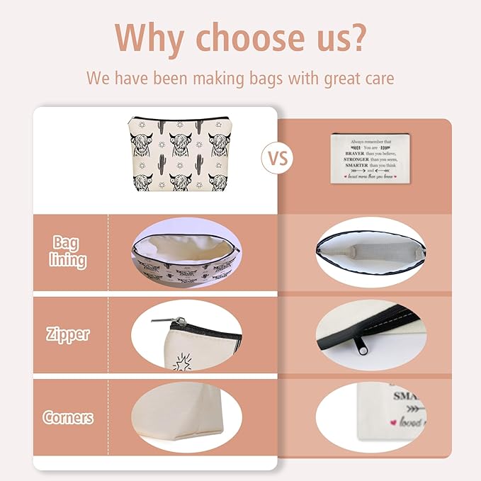 - ๐๐๐ค๐๐ฎ๐ฉ ๐๐๐ ๐๐จ๐ฅ๐จ๐ซ: Western highland cow makeup bag looks exactly as in the picture, with double-sided color graphics that are well-made and colorful.