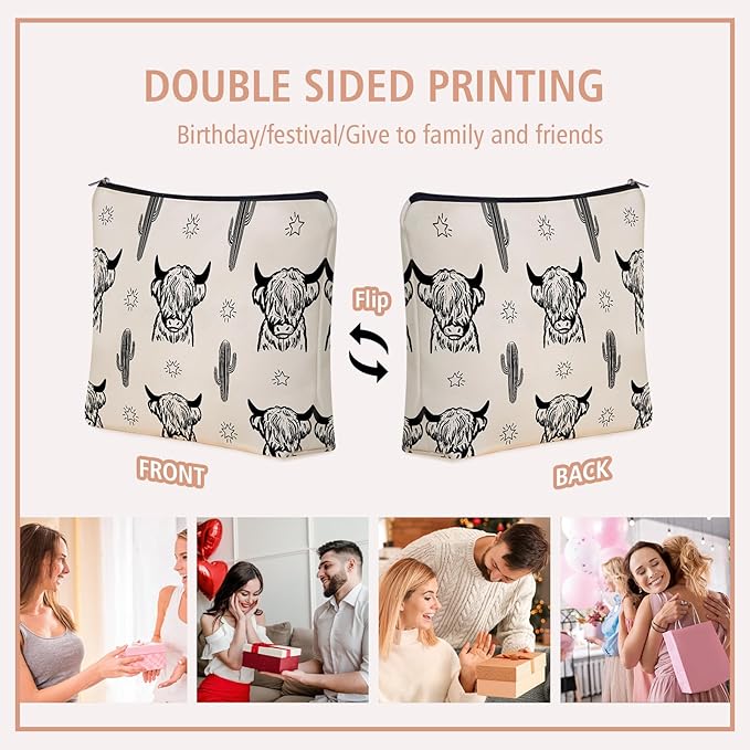Western Cow Gifts Makeup Bag: Versatile Highland Cow -Themed Cosmetic Bags๏ผPerfect for Teen Girls, Women & Cowgirl Stuff - Ideal Gift for Travel, Parties, Birthdays, Christmas.