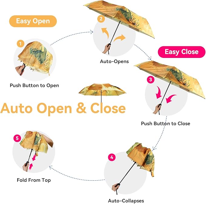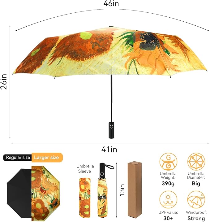 - Comfortable Handle: The ergonomic handle provides a secure and comfortable grip, making it easy to carry and control the van gogh umbrella. With one-handed press of a button, the umbrella will be automatically open or close in a second