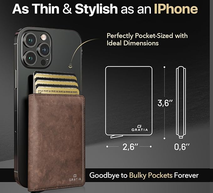 GRATIA Slim Wallet for Men - RFID Blocking, Minimalist Credit Card Holder, Stylish Men Wallet for Security & Convenience, Front & Back Pocket Cardholder, Holds 8 Cards (Brown)