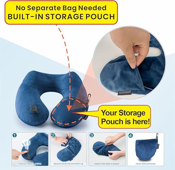 - This travel neck pillow has compact and lightweight design. It can be easily deflated and rolled up to save space in your luggage, making it convenient for travel. With comfy fabric a popular choice for travelers seeking comfort, convenience, and ease of use during their journeys