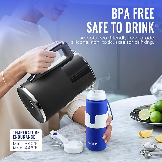 - SUSTAINABLE LIFESTYLE: Nefeeko collapsible water bottle is reusable, sturdy, and portable, reducing the need for single-use plastic bottles. It makes an ideal gift for families and friends.