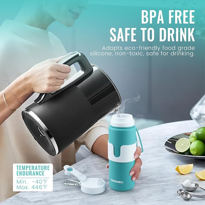 - SUSTAINABLE LIFESTYLE: Nefeeko collapsible water bottle is reusable, sturdy, and portable, reducing the need for single-use plastic bottles. It makes an ideal gift for families and friends