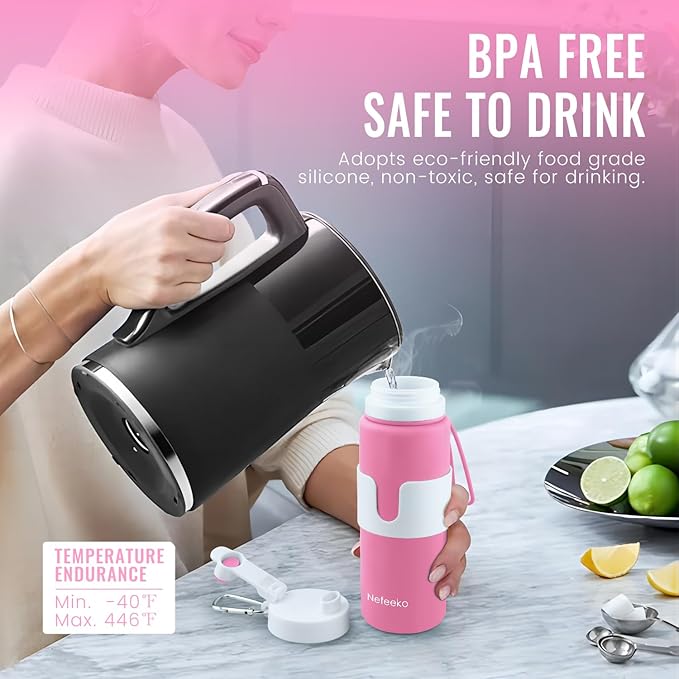 - SUSTAINABLE LIFESTYLE: Nefeeko collapsible water bottle is reusable, sturdy, and portable, reducing the need for single-use plastic bottles. It makes an ideal gift for families and friends.
