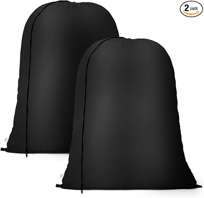 OTraki Small Laundry Bag 16x20 Inch Laundry Sack Bag with Drawstring Closure 2 Pack Laundry Wash Bag Dirty Clothes Organizer Machine Washable for Camp Home College Dorm, Black