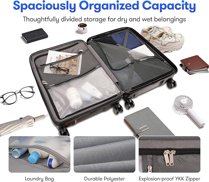 - 【Thoughtful Traveler-Focused Features】Elevate your travel experience with enhanced security and peace of mind through our built-in TSA-approved lock (default password: 0-0-0) and ensure your belongings stay secure while allowing airport security to inspect your luggage without damage