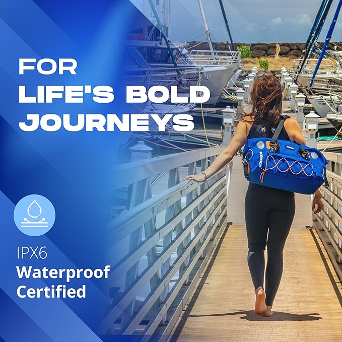 - IPX6 Waterproof Duffle Bag - Designed to keep your gear dry. A durable waterproof boat bag featuring a wide mouth opening for easy packing. With versatile carrying options, it’s great for all water adventures or as a waterproof camping bag.
