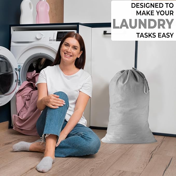 2 Pack - Extra Large Cotton Laundry Bag, Heavy Duty Large Laundry Bags 24 x 36 inch XL Drawstring Travel Organizer Bag Fit Hamper Basket Camp (Light Gret, Pack of 2)