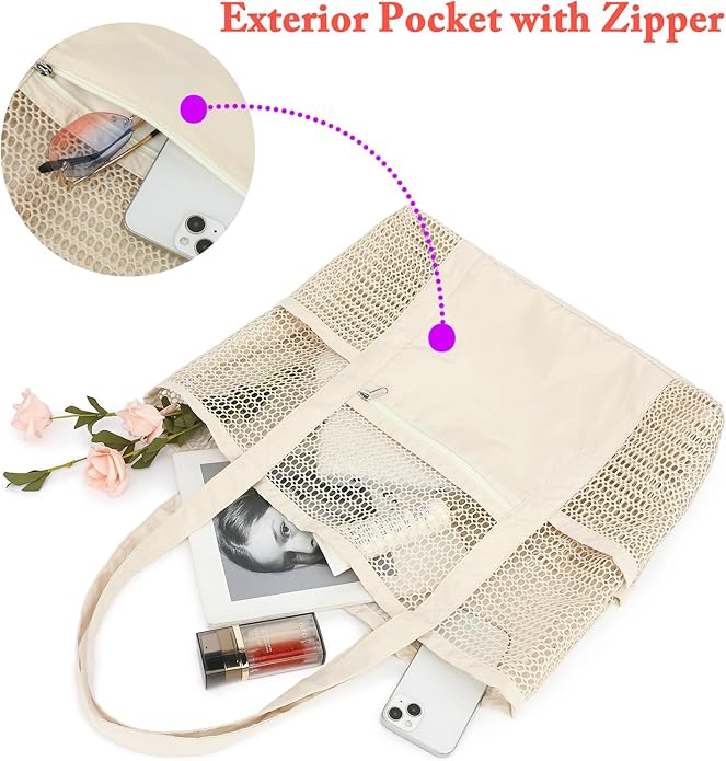 Mesh Beach Bag for Women, Casual Hobo Bags Large Beach Tote for Pool Travel Cruise Vacation Essentials