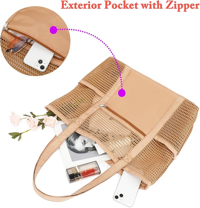 - ๐๏ธใ๐ ๐๐๐ซ๐ ๐ ๐๐๐ฌ๐ก ๐๐จ๐๐ค๐๐ญ๐ฌ & ๐ ๐๐ฉ๐ฅ๐๐ฌ๐ก-๐ฉ๐ซ๐จ๐จ๐ ๐๐ข๐ฉ๐ฉ๐๐ซ ๐๐จ๐๐ค๐๐ญใThis pool tote bag features multiple compartments, suitable for storing various items, making it easy to keep belongings organized and categorized. In addition, there is a splash-proof external zipper pocket, providing additional secure space for storing smaller or more private items. This design allows users to conveniently organize and store items, enhancing the overall user experience.