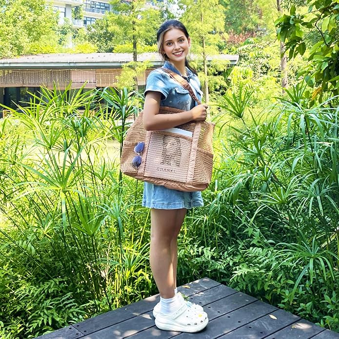 Mesh Beach Bag for Women, Casual Hobo Bags Large Beach Tote for Pool Travel Cruise Vacation Essentials