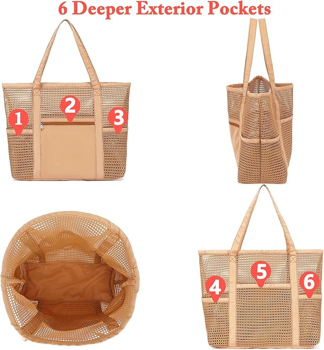 - ๐๏ธใ๐๐๐ง๐๐ฉ๐ซ๐จ๐จ๐ & ๐๐ฎ๐ข๐๐ค-๐๐ซ๐ฒใThe bottom of Fammart beach tote is made of memory fabric, which is sandproof and waterproof. The mesh design provides excellent ventilation, this feature helps the beach bag dry quickly. And it's even machine washable for added convenience!