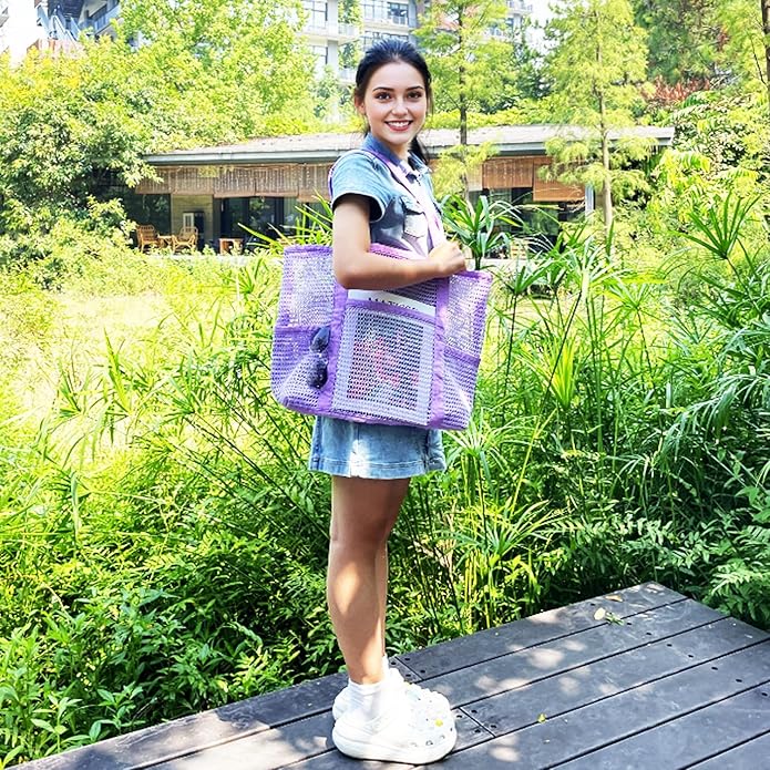 - ๐๏ธใ๐๐ฉ๐๐๐ข๐จ๐ฎ๐ฌ ๐๐ญ๐จ๐ซ๐๐ ๐ & ๐๐ฎ๐ซ๐๐๐ฅ๐ ใThis beach bag for women is made of double layer nylon mesh material, which is odor-free & tear-resistant. and the reinforced stitching further ensures exceptional durability.The 17.3"L x 7.87"W x 15.3"H mesh swim bag offers ample storage space for beach essentials like towels, sunscreen, body wash, shoes, water bottles, snacks, and other personal items. The open mesh design also makes it easy to organize and locate items within the bag.