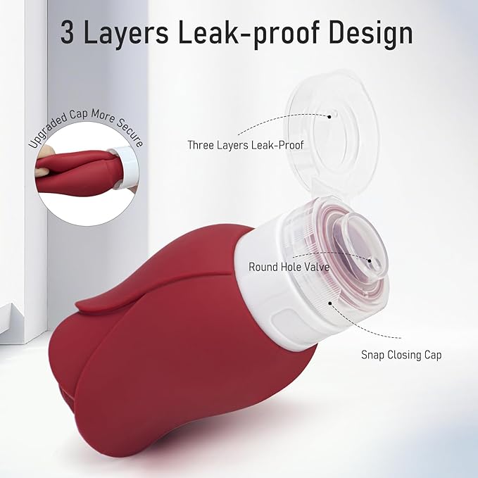 - Food grade silicone: cute rose design, made of food-grade silicone, BPA-free and good for our environment. The bottle seals well, is lightweight and soft, no need to worry about tearing and breaking.