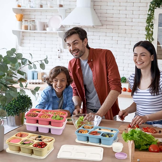 - KIDS & ADULTS EAT BETTER: Perfectly portioned 5-compartment bento snack box make it easy to keep your food separated and pack a variety of snacks and a balanced meals for any size appetite from kids to adults.