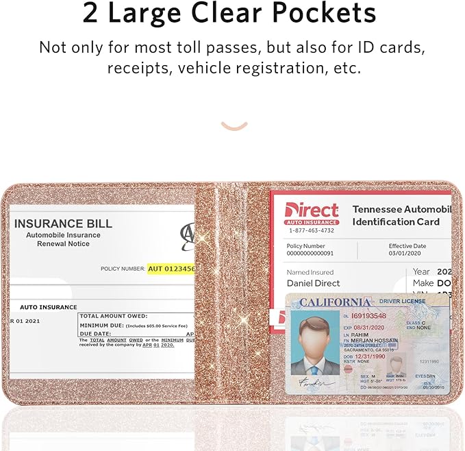 CoBak Car Registration and Insurance Holder - Small and Lightweight Vehicle Glove Box Car Organizer, Auto Truck Comparment Accessories Case for Essential Document, Driver License (Glitter Rosegold)