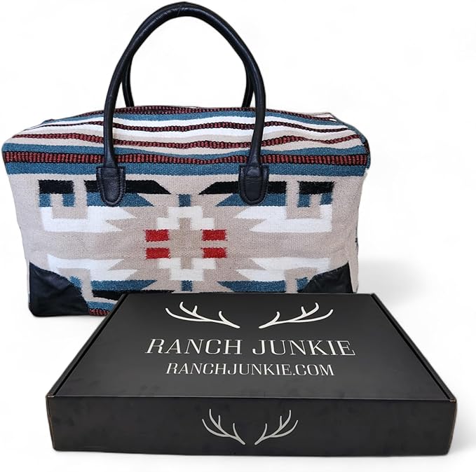 Aztec Large Weekender Southwestern Duffel Bag Saddle Blanket Bag 100% Leather Handles (Sahara)