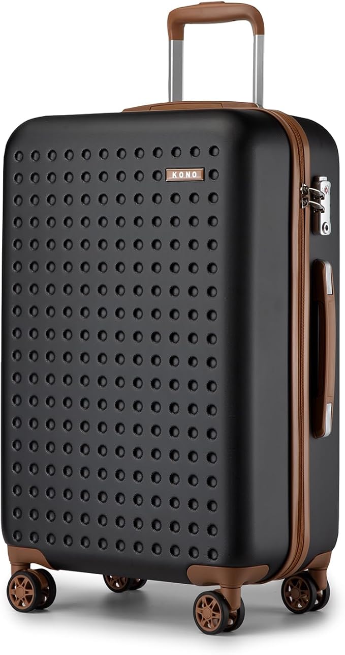 Kono 24 Inch Luggage Medium checked Lightweight Hardside Suitcase with Spinner Wheels & Built-in TSA Lock, Black