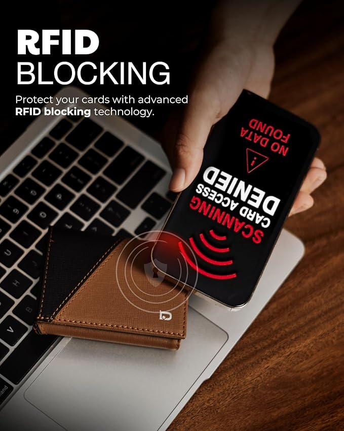 - 【 RFID Blocking Security 】 In today's world, identity theft is a growing concern. Jenoss comes equipped with cutting-edge RFID-blocking technology, creating a secure barrier around your credit cards, IDs license, and other sensitive information, ensuring your data remains safe from electronic pickpocketing. This protective feature makes it a must-have men's wallet for the alpha mens.