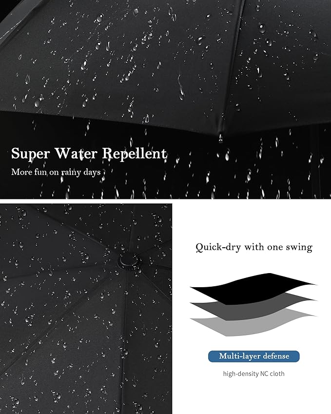 - Durable Construction and Weather Protection: Featuring a waterproof coating and reinforced fiberglass ribs, this sturdy umbrella offers exceptional durability and all-weather performance. It provides reliable waterproof coverage, making it an essential choice for high-performance, windproof protection