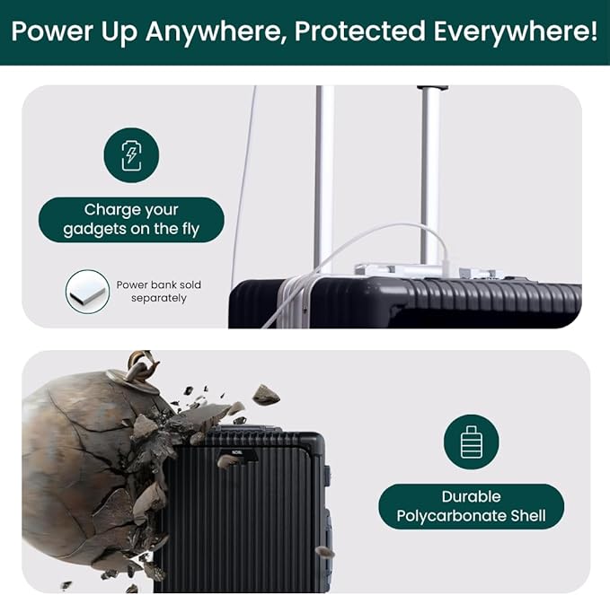 - Strong & Lightweight: Built with a reinforced aluminum frame and impact-resistant polycarbonate shell, this lightweight 9.7 lb. zipperless carry-on is ultra-durable. Dual TSA-approved locks provide extra security, keeping your belongings safe during travel.