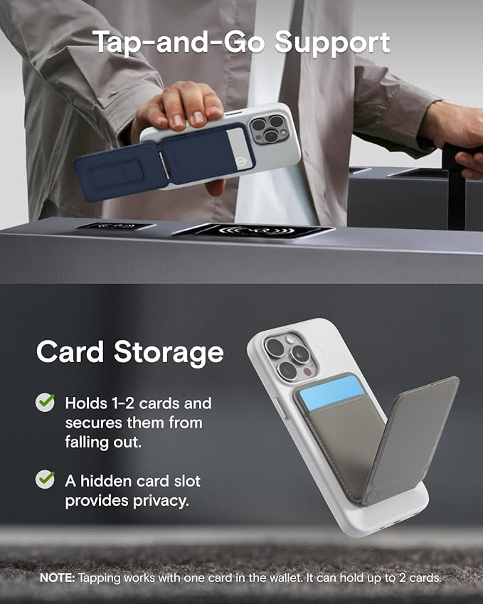 - Foldaway On-the-Go Companion: At 0.35" thick and weighing 3.4oz, it fits in your palm and goes in your pocket without adding bulk so you can access all its features on the go. And you can use this phone wallet for the iPhone's Standby mode on any surface. Available in two stylish colors including Taupe and Navy Blue to go with everything.