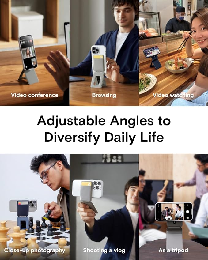 - Universal Compatibility: MOFT Phone Wallet is compatible with iPhone 17/16/15/14/13/12 series and magnetic cases. For other devices (such as Samsung) and non-magnetic cases, the phone stand can be attached using the included metal ring. Please check the product dimensions (3.8in X 2.5in X 0.35in) to ensure it fits the back of your phone without obstructing the camera. The slim design ensures your phone’s lenses stay unobstructed—perfect for Instagram-worthy shots at cafes or business events.