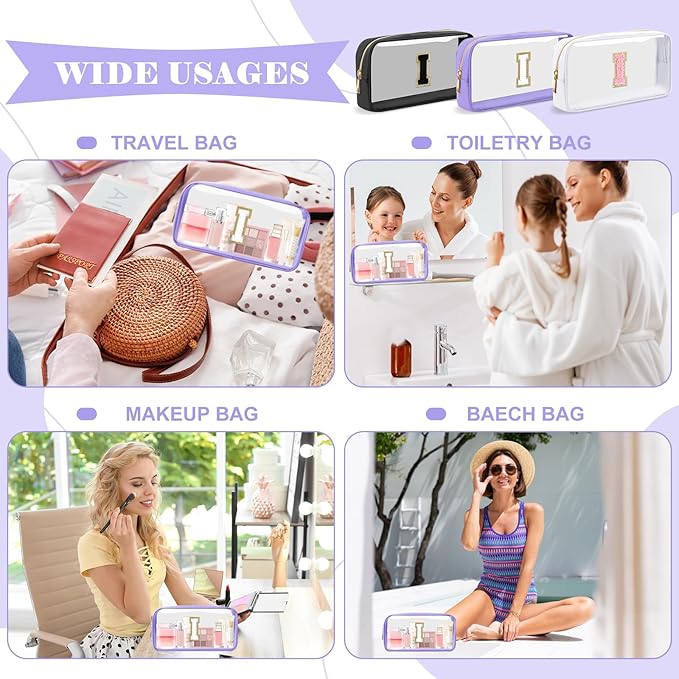 - 【Chenille Letter Patch Bag】Preppy initial makeup bag with professionally sewn chenille letter patches. You don't have to worry about them falling off. With its waterproof nylon & PVC design and unique glitter A-Z initials, it will surely stand out from all your makeup bags, brighten your mood and highlight your personality.