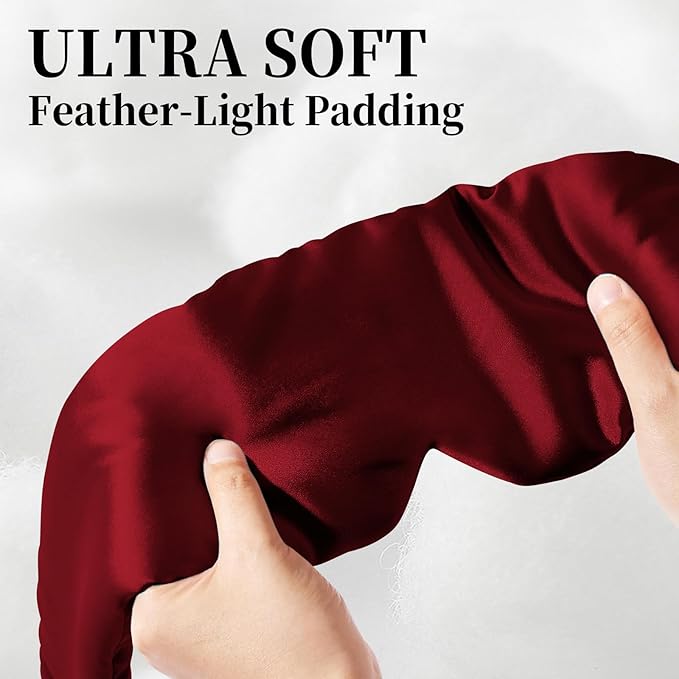 100% Mulberry Silk Sleep Mask, Large Eye Cover for Sleeping, Comfortable and Pressure-Free Sleeping Masks for Women Men, Completely Blackout (Wine Red)