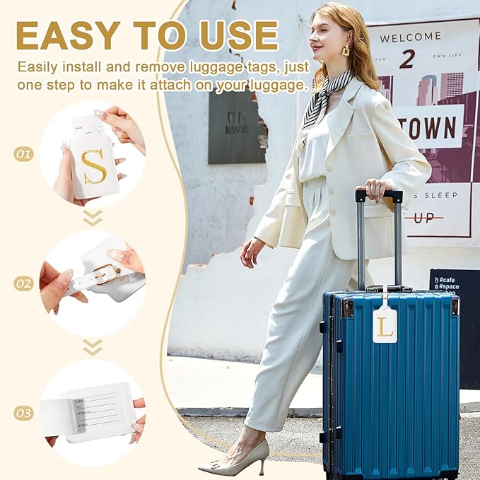 - ✈【Personalized Gift & Wide Usage】Eye-catching initial A-Z letter allow you to spot your luggage at a glance among many items, which helps to identify your luggage, perfect for varieties of flights, cruises, small journeys, bus and train trips and more. Travel tags can be chosen based on your initials, so it will be a unique gift for your loved ones such as friends, lovers, family members, it is also a perfect gift for family vacations, Christmasor even business travel party.