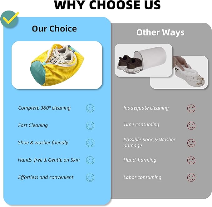 - Easy & Efficient, Hands-Free: Say goodbye to the hassle of washing shoes by hand. Just put your shoes in the shoe cleaning bag, drop the bag into the washing machine, and start the cycle. Wait for sparkling clean shoes to come out. This saves you time and effort, making cleaning a breeze