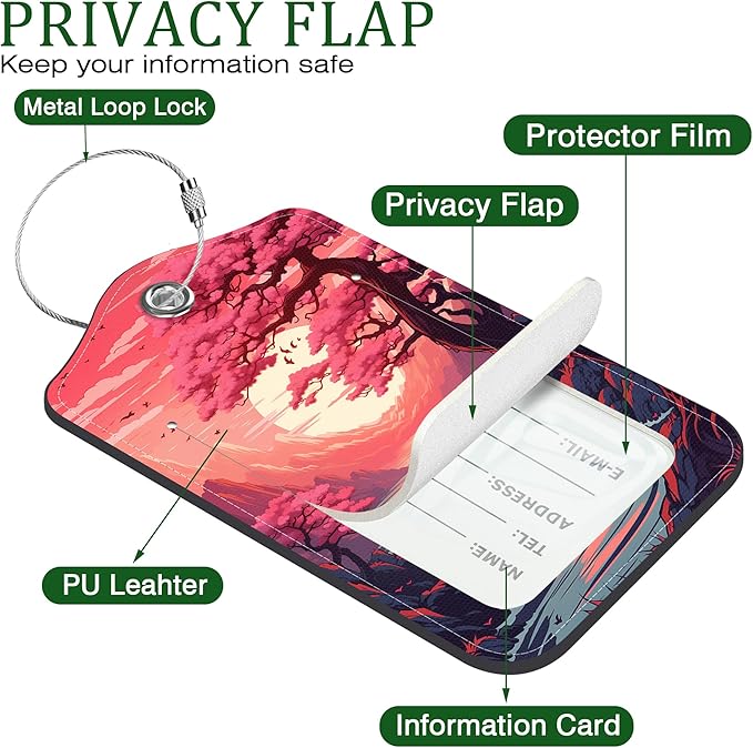 - Exquisite Design: This Japanese Sakura Tree Mountains Sunset luggage tag is printed with a unique pattern, simple and stylish, beautiful and generous, the exquisite pattern design will make your luggage tag stand out and show your personality!
