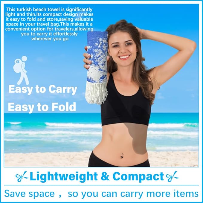 - LIGHTWEIGHT AND COMPACT:This turkish beach towel is significantly light and thin.Its compact design makes it easy to fold and store,saving valuable space in your travel bag.This makes it a convenient option for travelers,allowing you to carry it effortlessly wherever you go