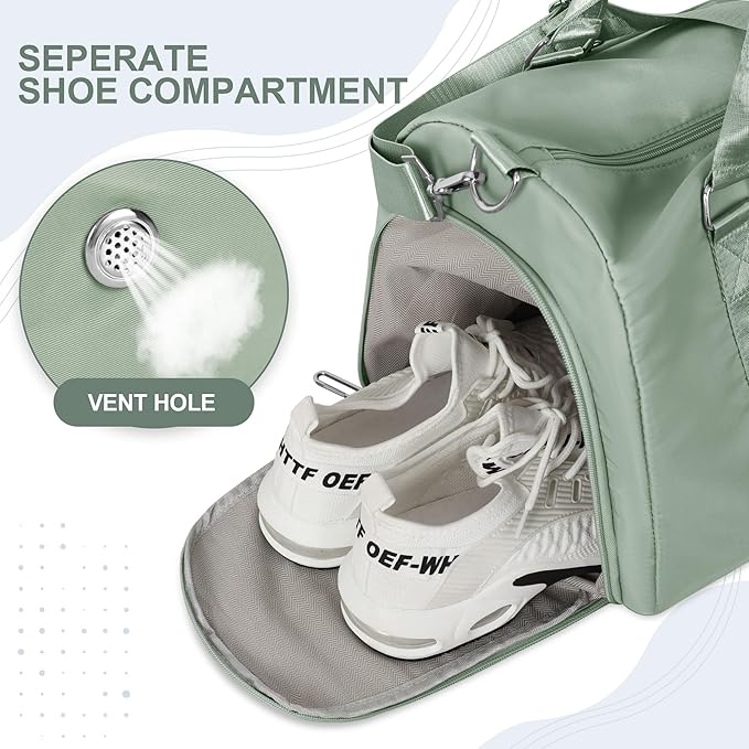 - ๐๐๐ญ ๐๐จ๐๐ค๐๐ญ & ๐๐ง๐๐๐ฉ๐๐ง๐๐๐ง๐ญ ๐๐ก๐จ๐ ๐๐จ๐ฆ๐ฉ๐๐ซ๐ญ๐ฆ๐๐ง๐ญ: The duffel bag has a separated wet pocket which can contain any of your wet towels or swimsuits. The shoe compartment can also keep your shoes away from clean clothes and ensure dryness in the cabin