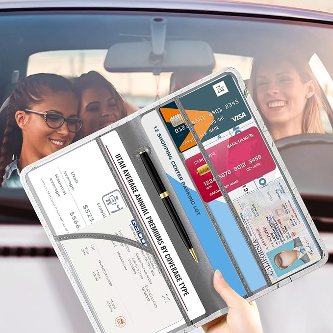 - 6 Comparments: Comes with 3 large pockets for insurance documents, vehicle registrations cards and other valueable information. And 3 small pocket for driver's license, ID cards, business cards, key contact information cards.