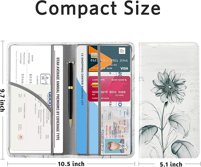 - Compact Size: 9.5" x 5.1"(24cm x 13cm), slim profile and lightweight design, perfect size for any glove box or console compartment, ideal choice to protect your important documents. Also a great gift for yourself, lovers, friends and family.