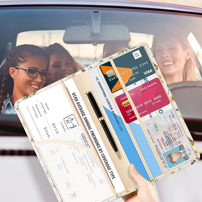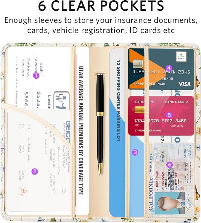 - 6 Comparments: Comes with 3 large pockets for insurance documents, vehicle registrations cards and other valueable information. And 3 small pocket for driver's license, ID cards, business cards, key contact information cards.