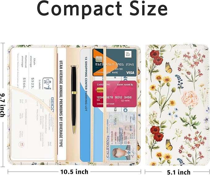 - Compact Size: 9.5" x 5.1"(24cm x 13cm), slim profile and lightweight design, perfect size for any glove box or console compartment, ideal choice to protect your important documents. Also a great gift for yourself, lovers, friends and family.