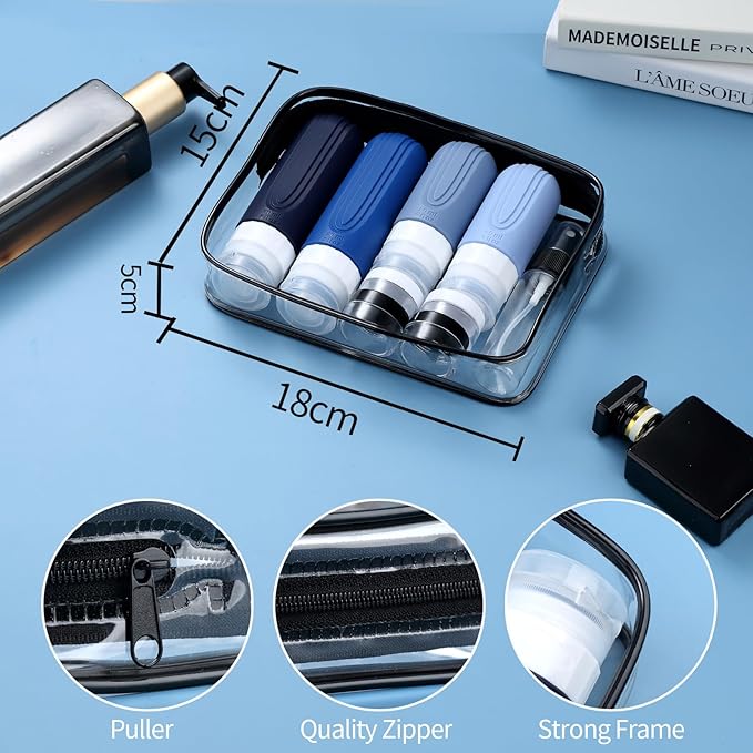 - Useful Travel Accessories: This is a nice assortment of travel containers in a useful zip case. ( Come in 4 Travel Bottles+4 Travel Jars+2 Spray Bottles+2 Scoopers+1 Funnel+1 Clean Brush + 1 Page Label + 1 Clear Toiletry Bag ) Multiple ones allow you take along different beauty products and toiletries according to your requirement