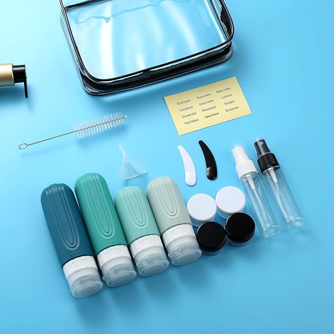 16 Pack Travel Bottles for Toiletries, TSA Approved Silicone Travel Containers jar for Toiletries, Leak Proof Refillable Liqus Shampoo And Conditioner Traveler Essentials toiletry Bottles