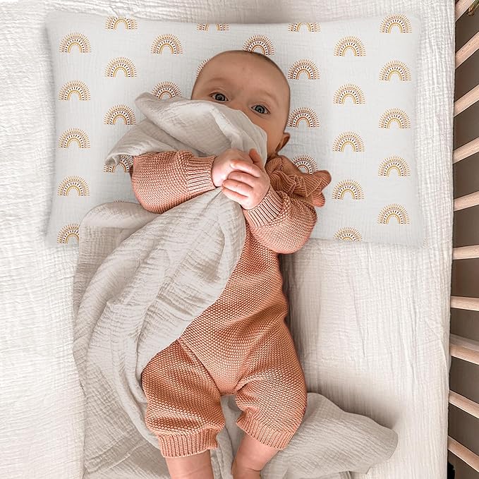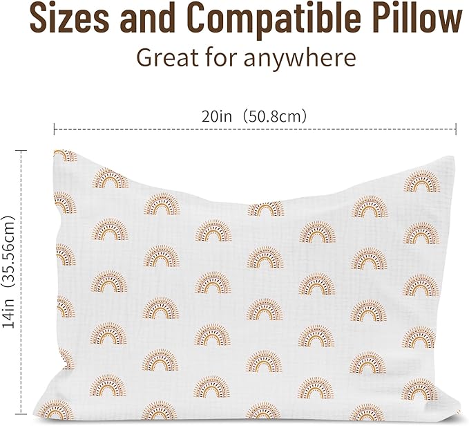 Toddler Pillowcases for 14"x20" Pillow 2 Pack, Muslin Small Toddler Baby Kids Travel Pillow Covers for Boys Girls with Envelope Closure (Beige & Rainbow, 14 x 20 Inch)